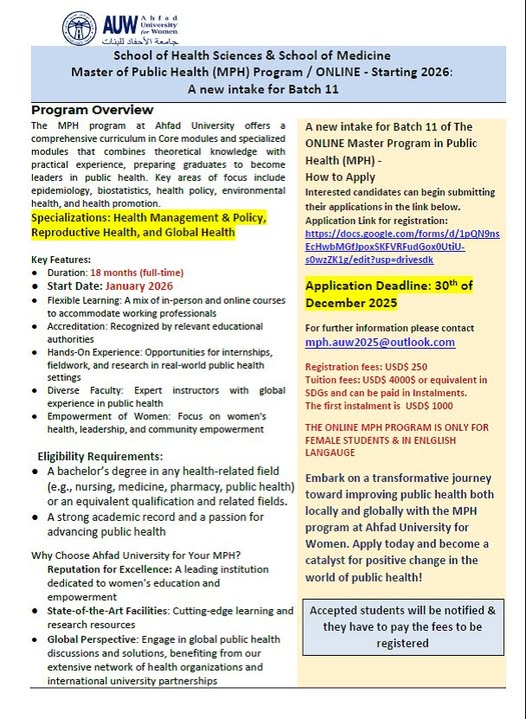 THE ONLINE MPH PROGRAM IS ONLY FOR FEMALE STUDENTS & IN ENLGLISH LANGAUGE