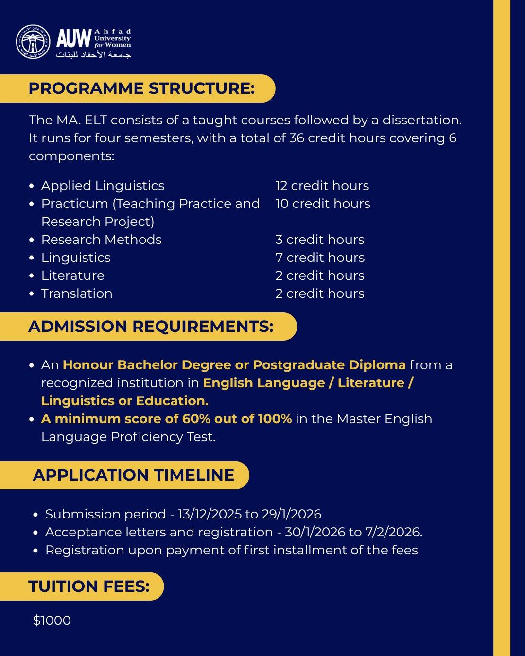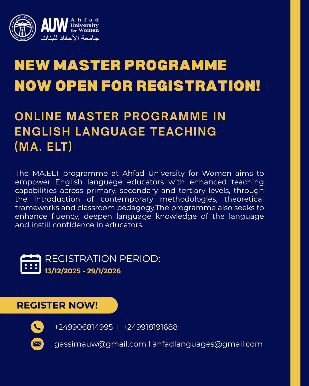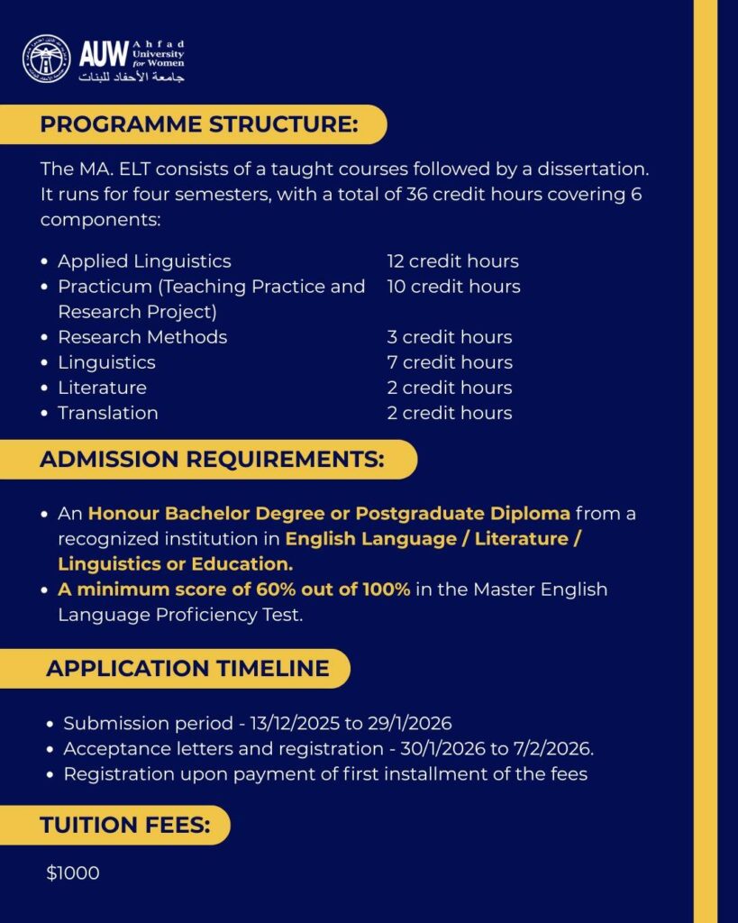 The School of Languages announces the opening of applications for its Online Master Program in English Language Teaching and Online Postgraduate Diploma in English Language Proficiency and Communication