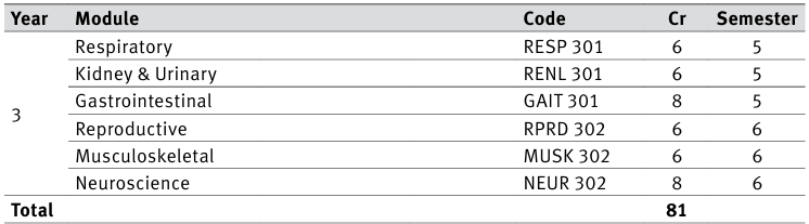 This integrated Module covers the anatomy, histology, biochemistry, physiology, pathology, microbiology, immunology, radiology and pharmacology of the Musculoskeletal System including the bones of the skeleton and the cartilages, ligaments, and other connective tissue that stabilize or connect the bones. Concepts in community medicine including prevention, and epidemiology are studied in relation to diseases of this system.
