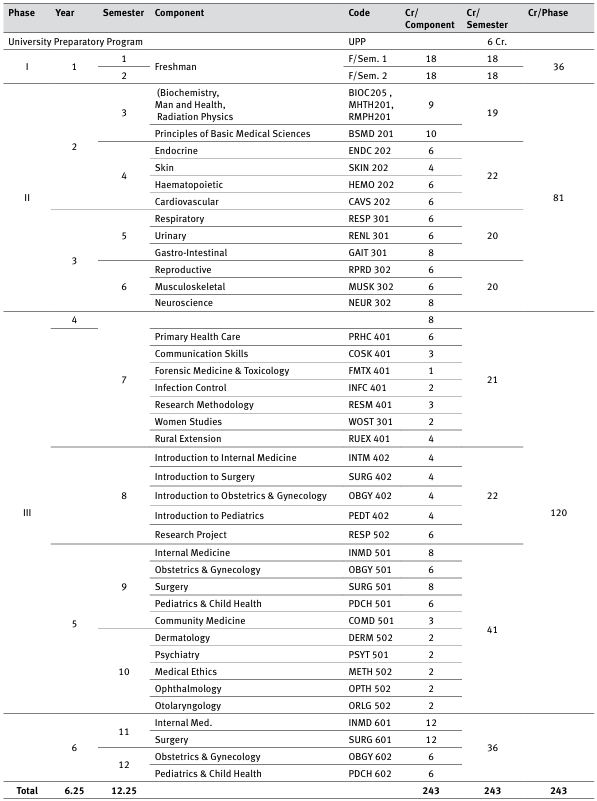 Study period in AUWSOM is 6 years spread over 12 semesters (in addition to the UPP) and assembled into three Phases.