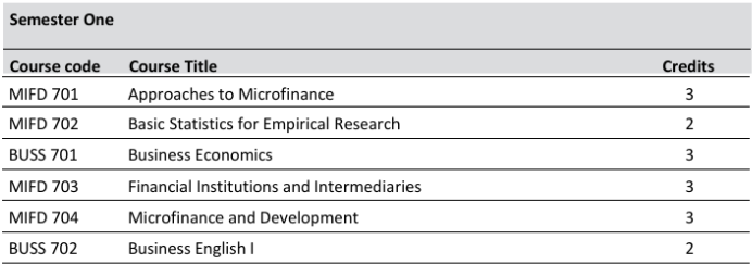 The mission of the MMFD program is to provide students with advanced, timely and appropriate knowledge in microfinance through a well-structured curriculum that fosters effective learning. The program emphasizes the use of teaching methodologies, analytical tools and techniques that are essential for enhancing the capacity of graduates in both the theoretical and the practical dimensions, necessary for the microfinance industry in the country.