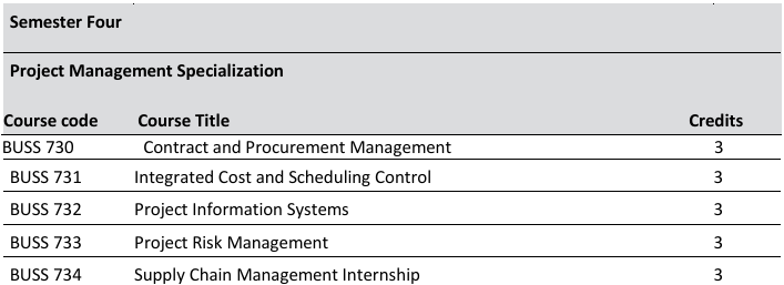 BUSS 731       Integrated Cost and Scheduling Control                         3 cr.